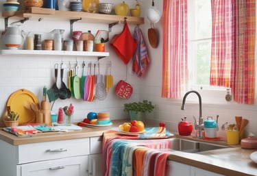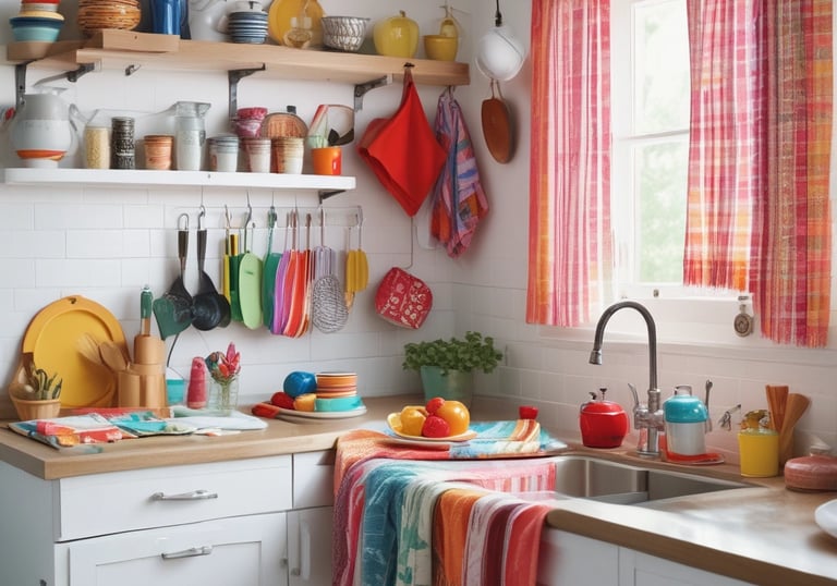 Kitchen linens blending functionality with vibrant Indian patterns.